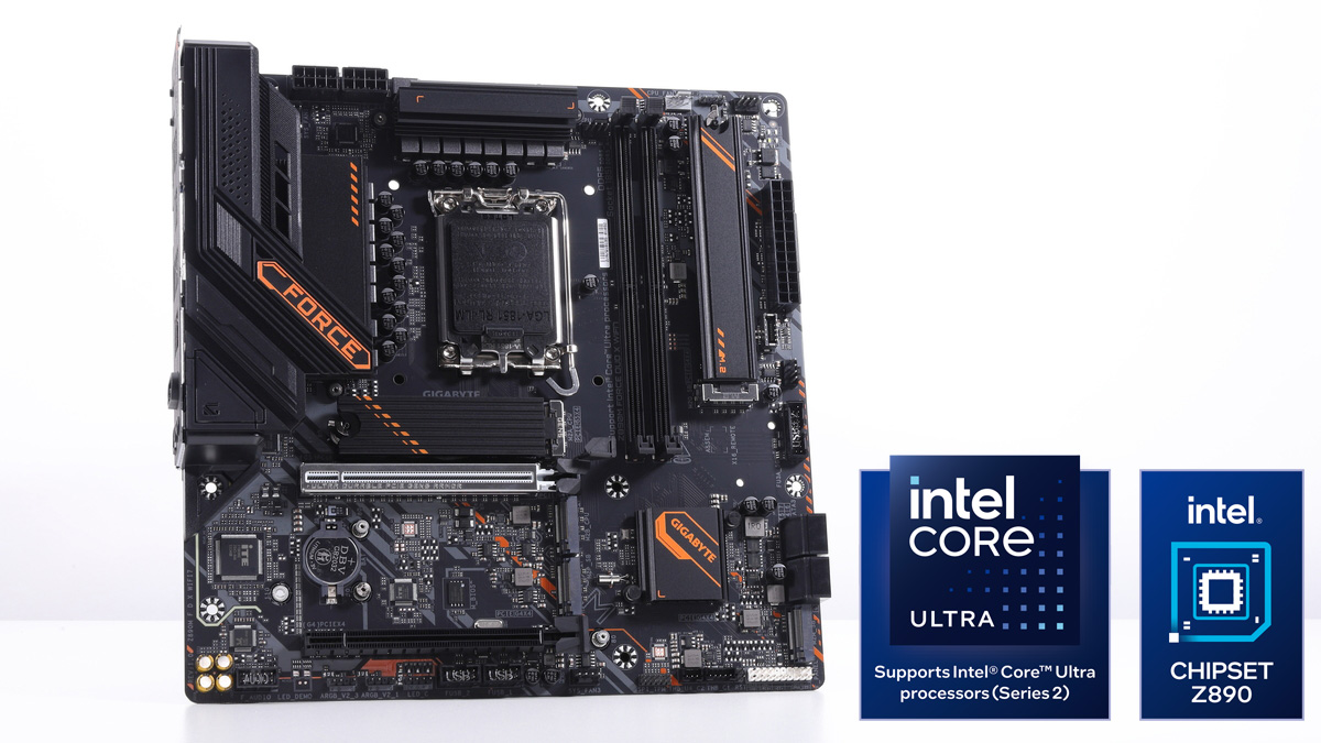 GIGABYTEの「GIGABYTE Z890M FORCE DUO X WIFI7」は、Intelの最新CPU「Core Ultra 200S Plus」向けに用意された新作マザーボードのひとつで、microATX規格に準拠した基板に上位チップセットのIntel Z890を搭載している。
